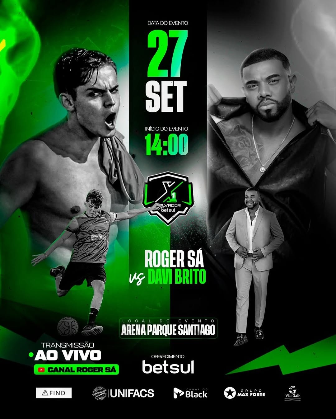 A partida será transmitida ao vivo pelo Canal Roger Sá no YouTube.